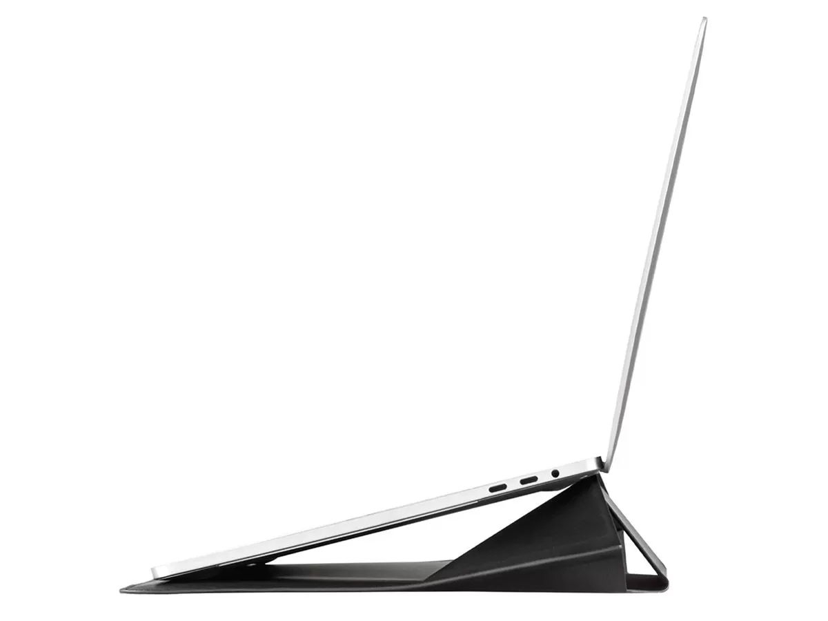 Чехол визуально выглядит как папка, закрывается на кнопку и защищает ноутбук от царапин и повреждений во время переноски. MOFT Carry Sleeve частично выполнен из эластичного и мягкого материала, так что дополнительно в него можно положить документы, смартфон и другие плоские компактные предметы.