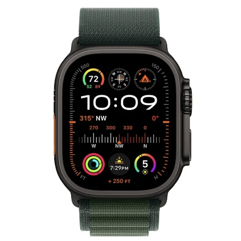 Apple Watch Ultra 2 (2024) оснащены 1.92-дюймовым OLED-экраном с разрешением 502×410 и пиковой яркостью 3000 нит, обеспечивающей отличную читаемость даже под прямыми солнечными лучами. Часы удобно использовать для звонков, сообщений и навигации.