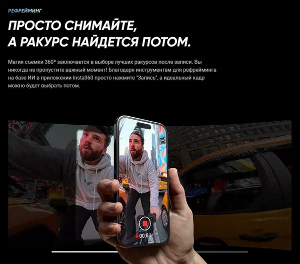 С технологией 360° Reframing вам не нужно думать о направлении камеры во время съемки – просто записывайте, а нужный ракурс выбирайте на постобработке!